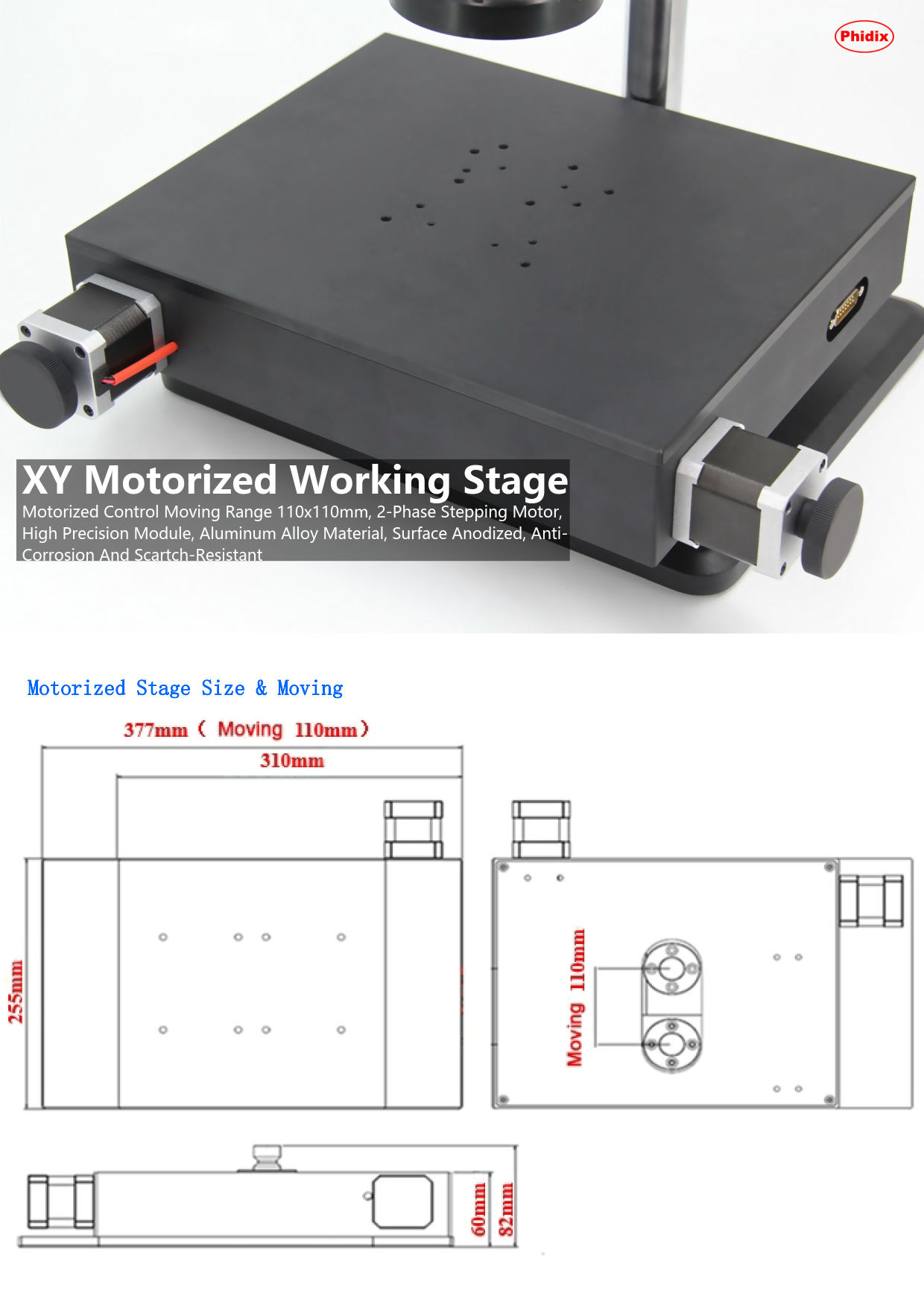 Motorized Working Stage | XY Motorized Working Stage, 2-Phase Stepping Motor, High Precision Module, Aluminum Alloy Material, Surface Anodized, Anti-Corrosion And Scratch-Resistant | ● |